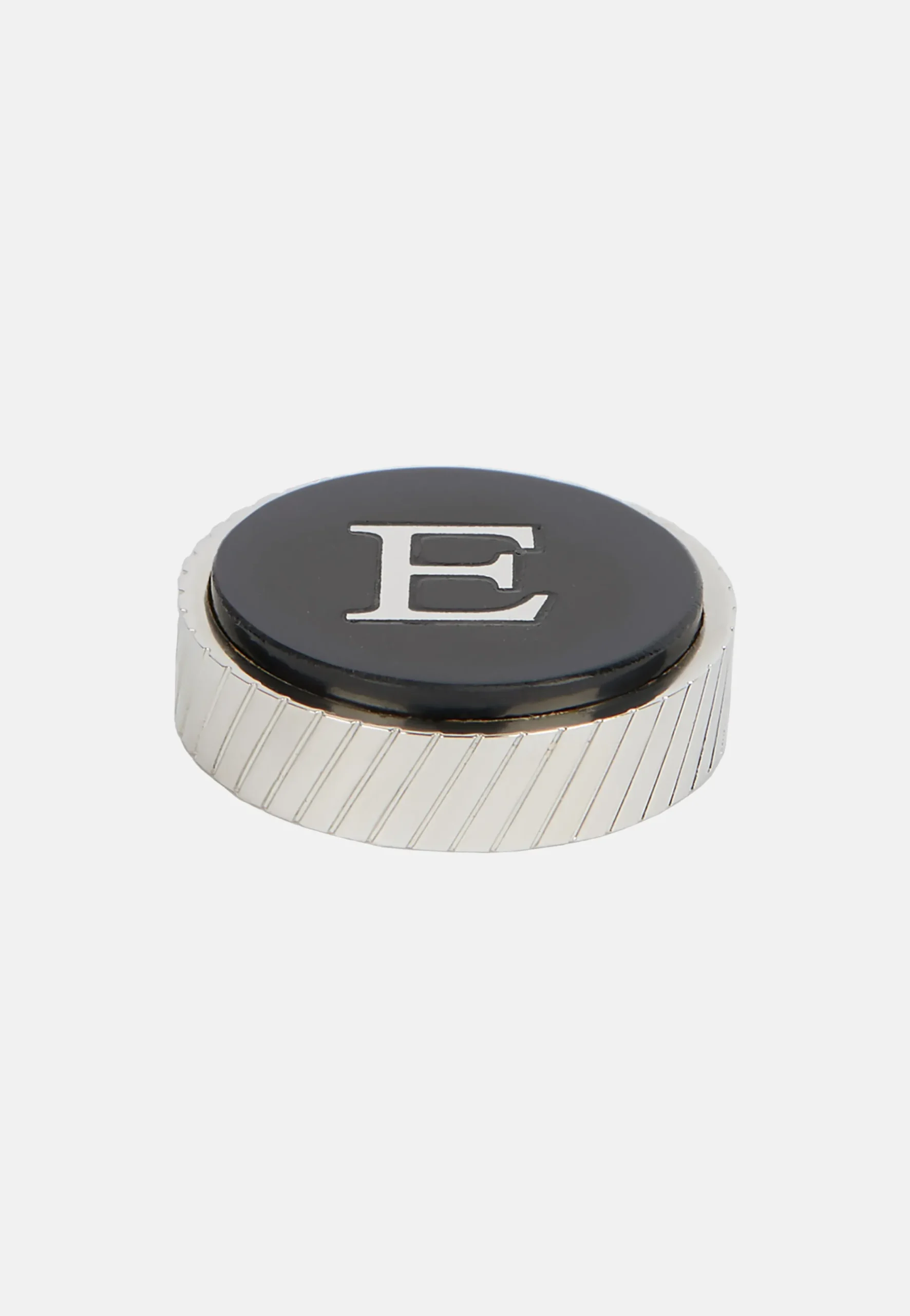 il se caractérise par la lettre émaillée sur fond noir, à appliquer sur la base spéciale pour boutons de manchette en métal.