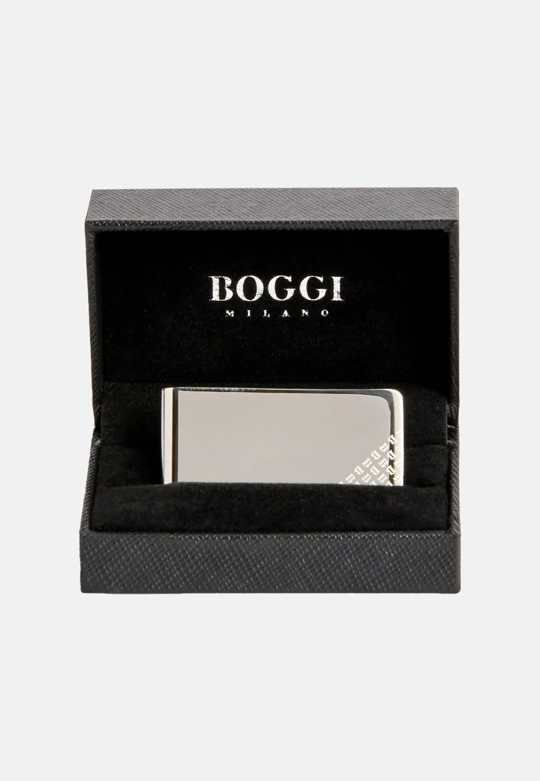 en métal argenté avec le b de boggi milano gravé.
