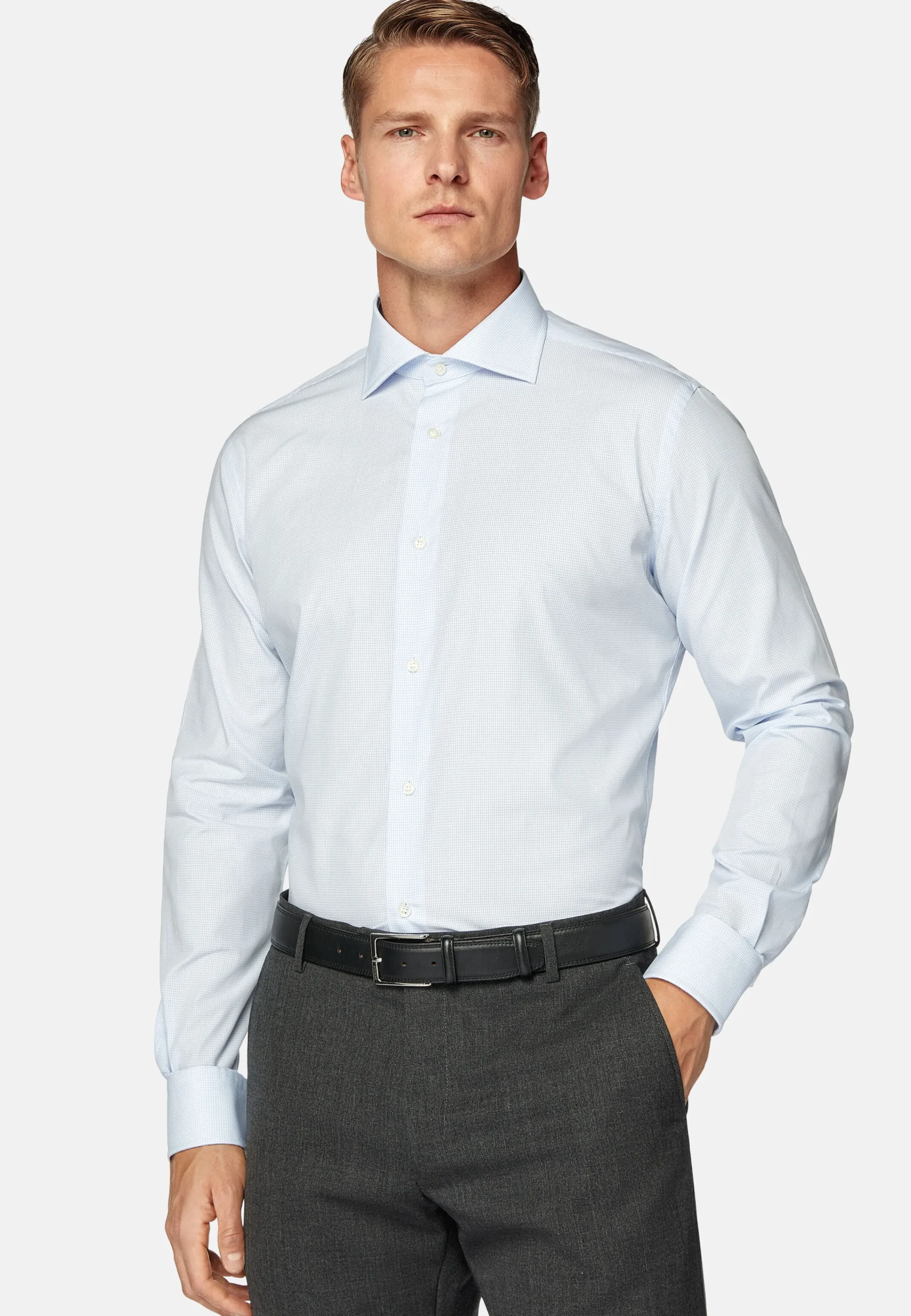 Chemises Habillées-Boggi Milano Chemise Blanche Pin Point En Coton Slim Fit