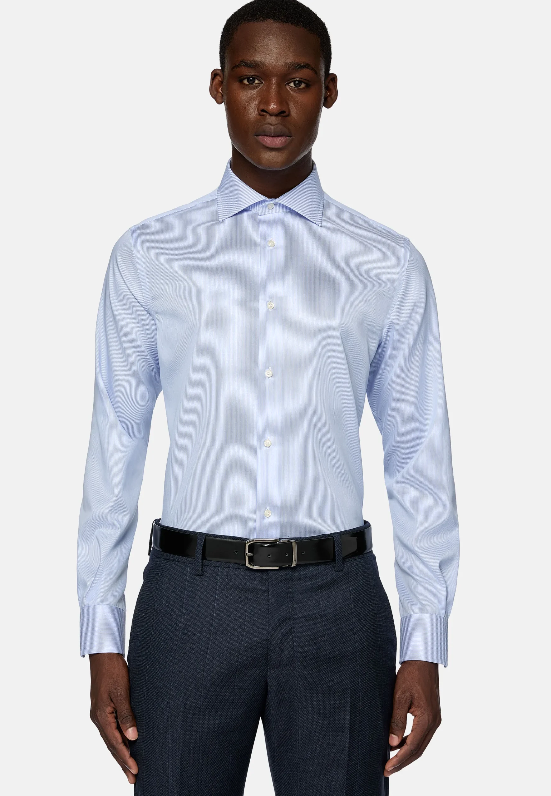 Chemises Habillées-Boggi Milano Chemise À Rayures En Sergé De Coton Regular Fit Bleu clair