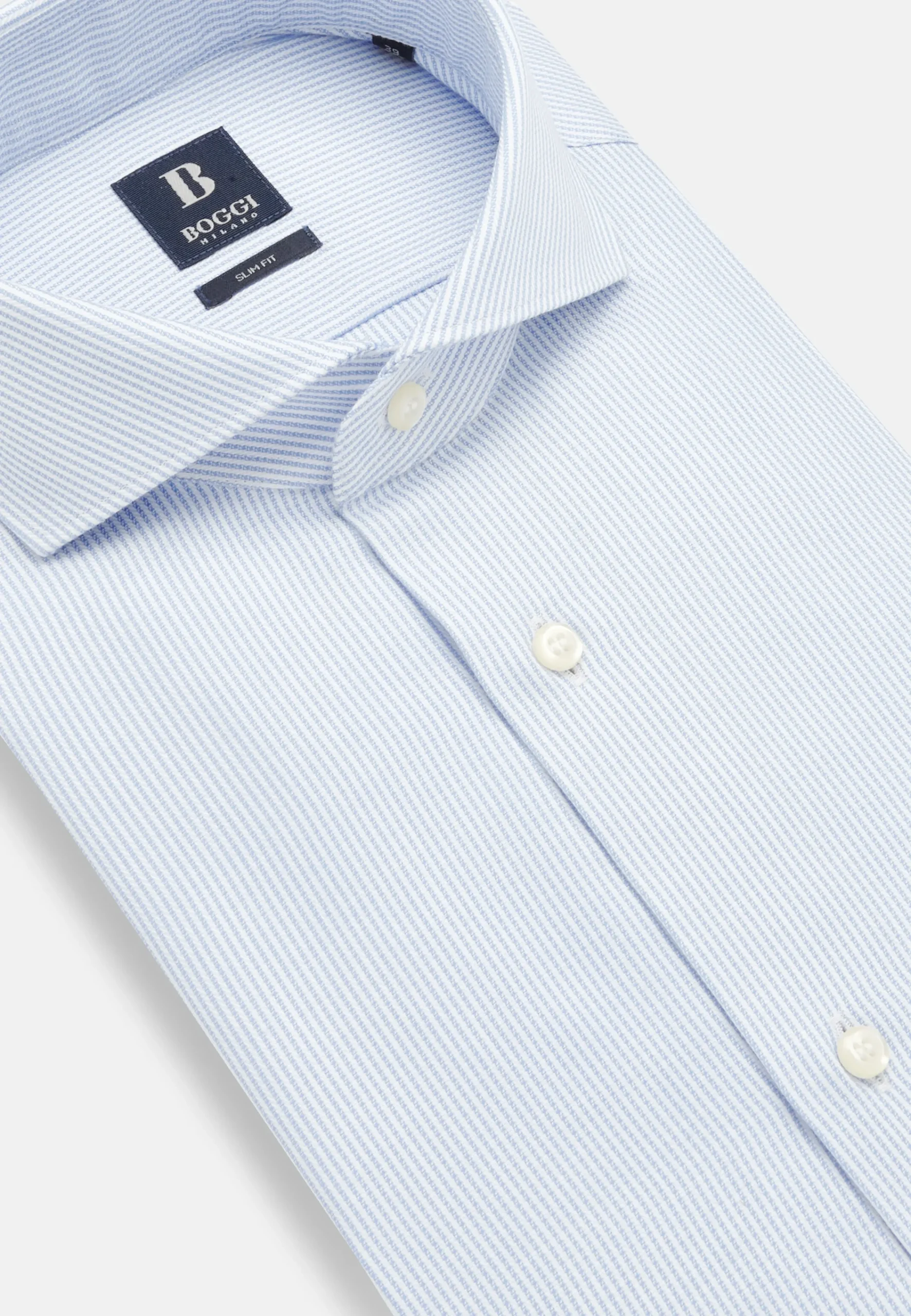 Chemises Habillées-Boggi Milano Chemise En Coton Dobby Slim Fit Bleu clair
