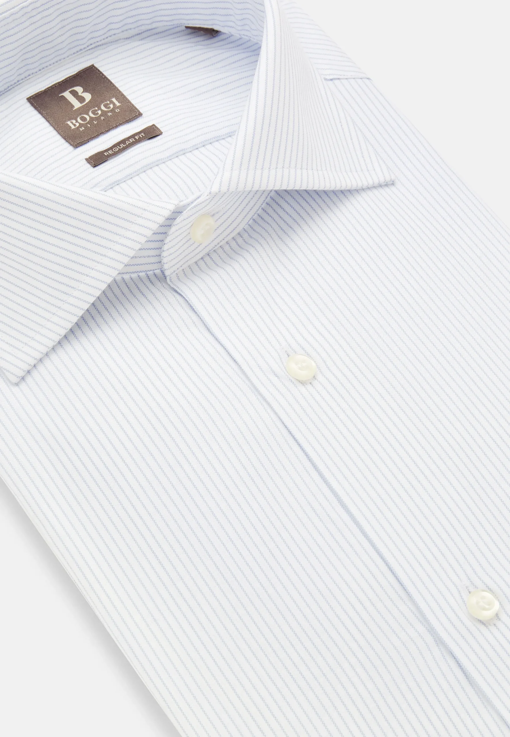Chemises Habillées-Boggi Milano Chemise À Rayures En Sergé De Coton Regular Fit Bleu clair