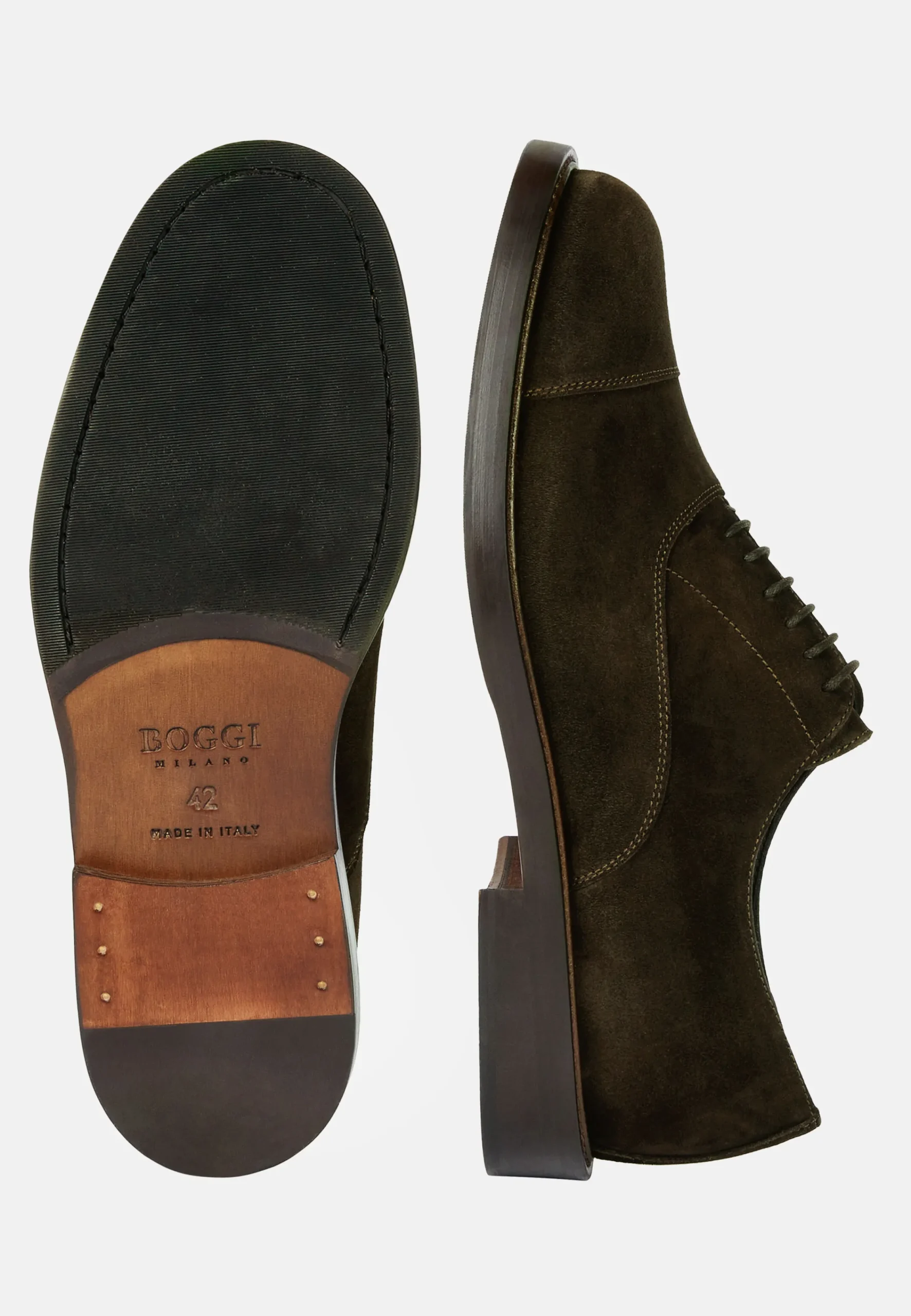 Elles présentent une doublure en cuir, des lacets cirés et une semelle en cuir.