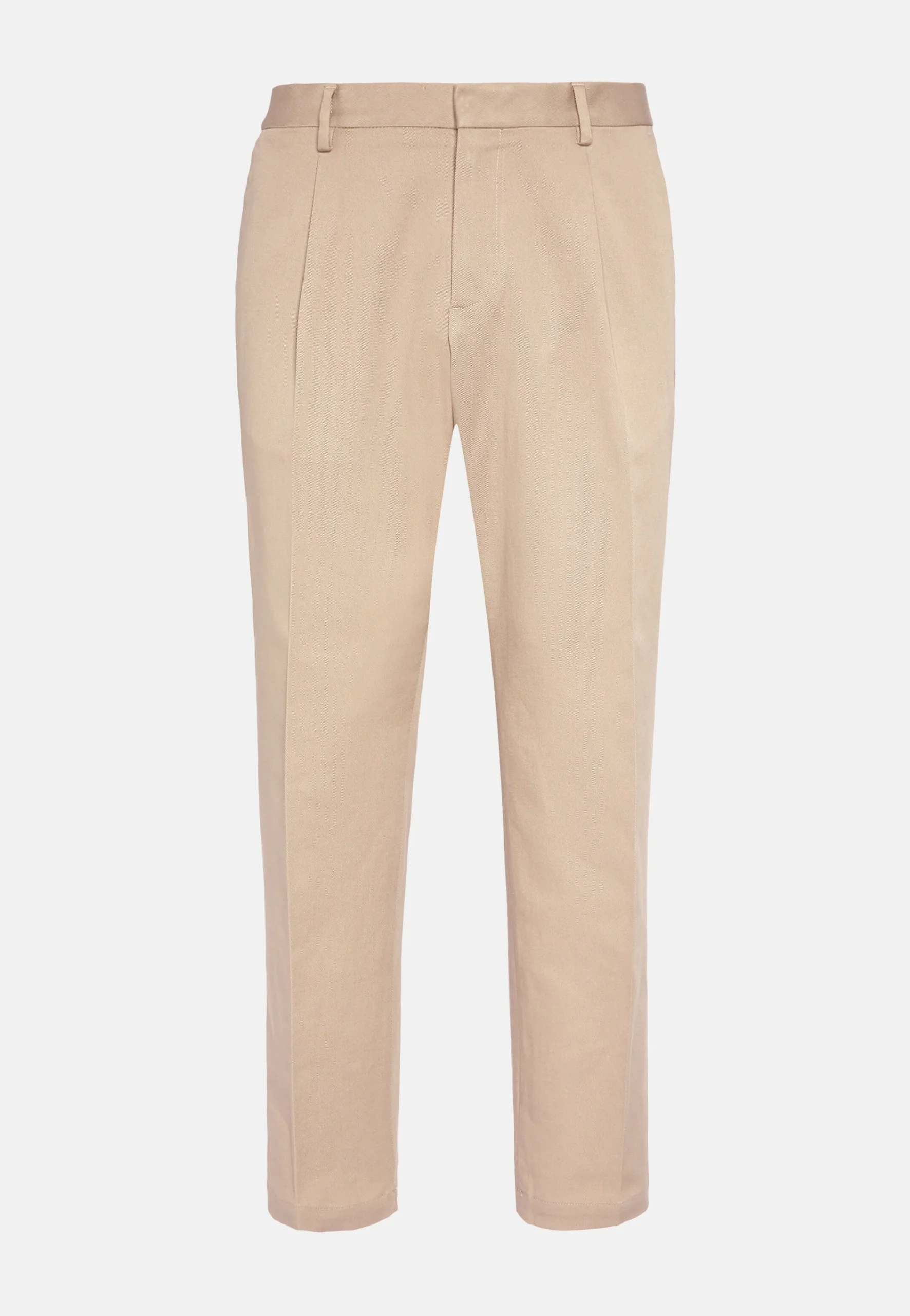 Fermeture avec bouton et zip, poches avant en biais et poches arrière.