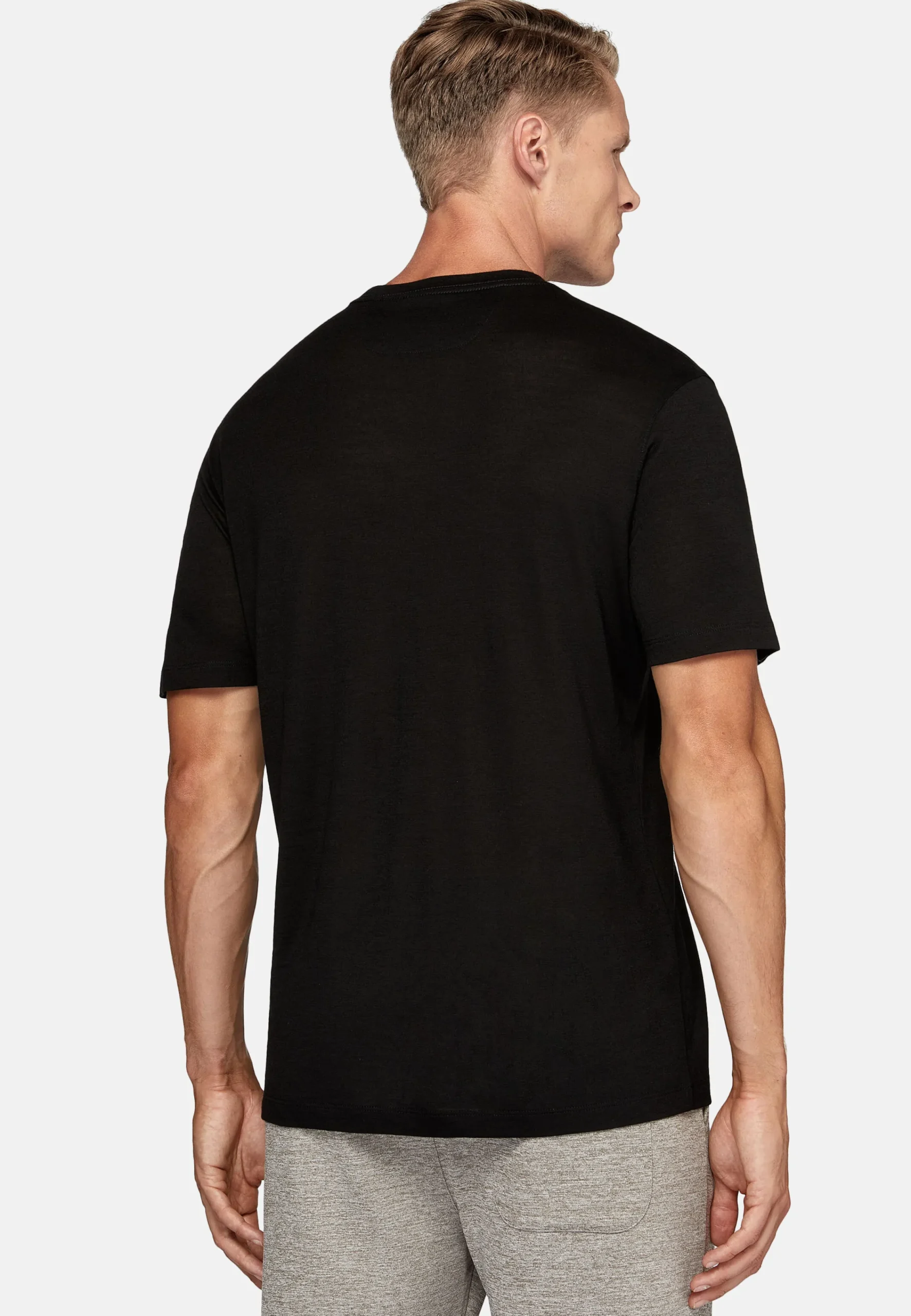 Ce modèle présente le B de Boggi Milano à gauche en bas du vêtement.