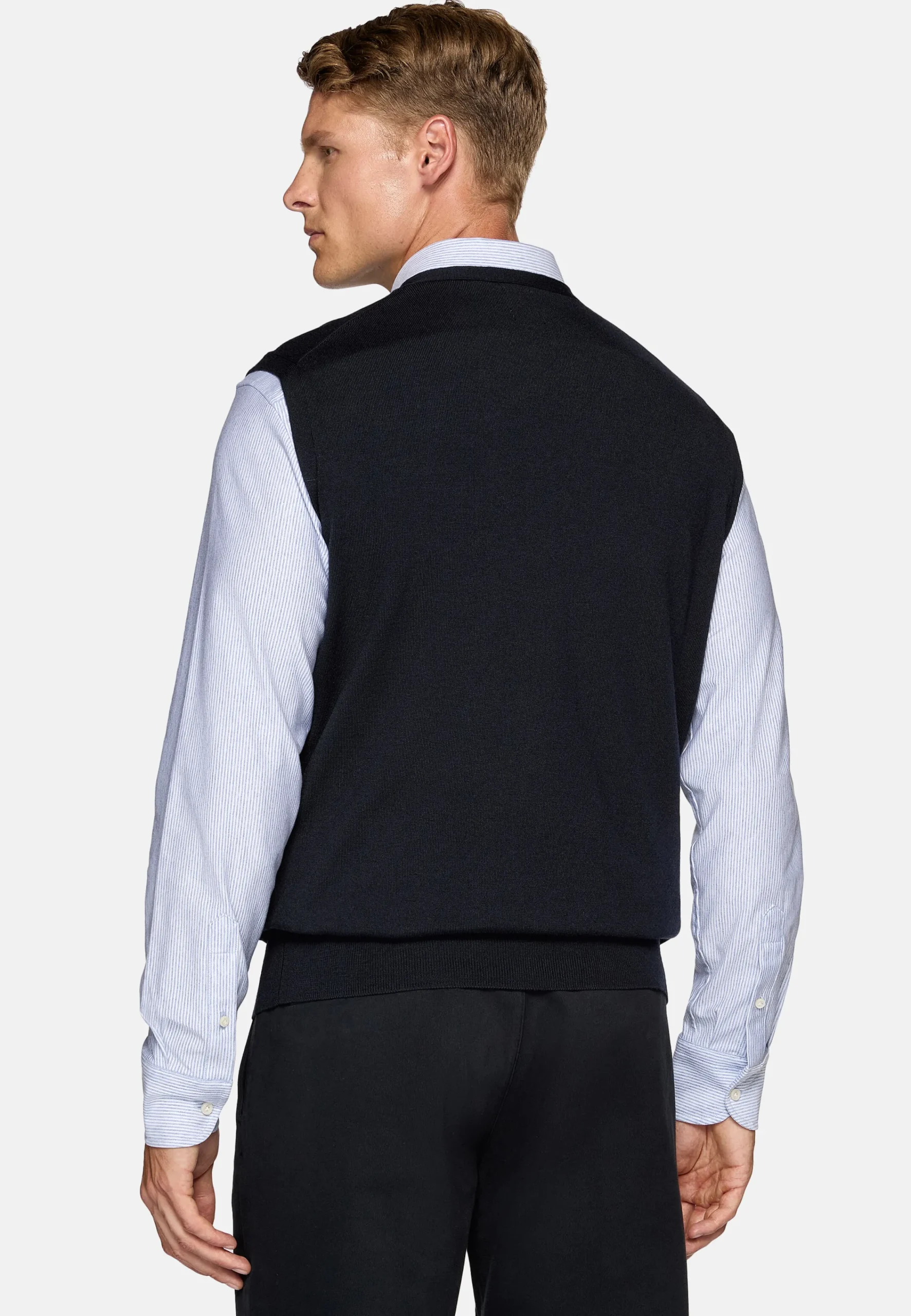 En pure laine mérinos extra-fine avec bouton en nacre marqué du logo.