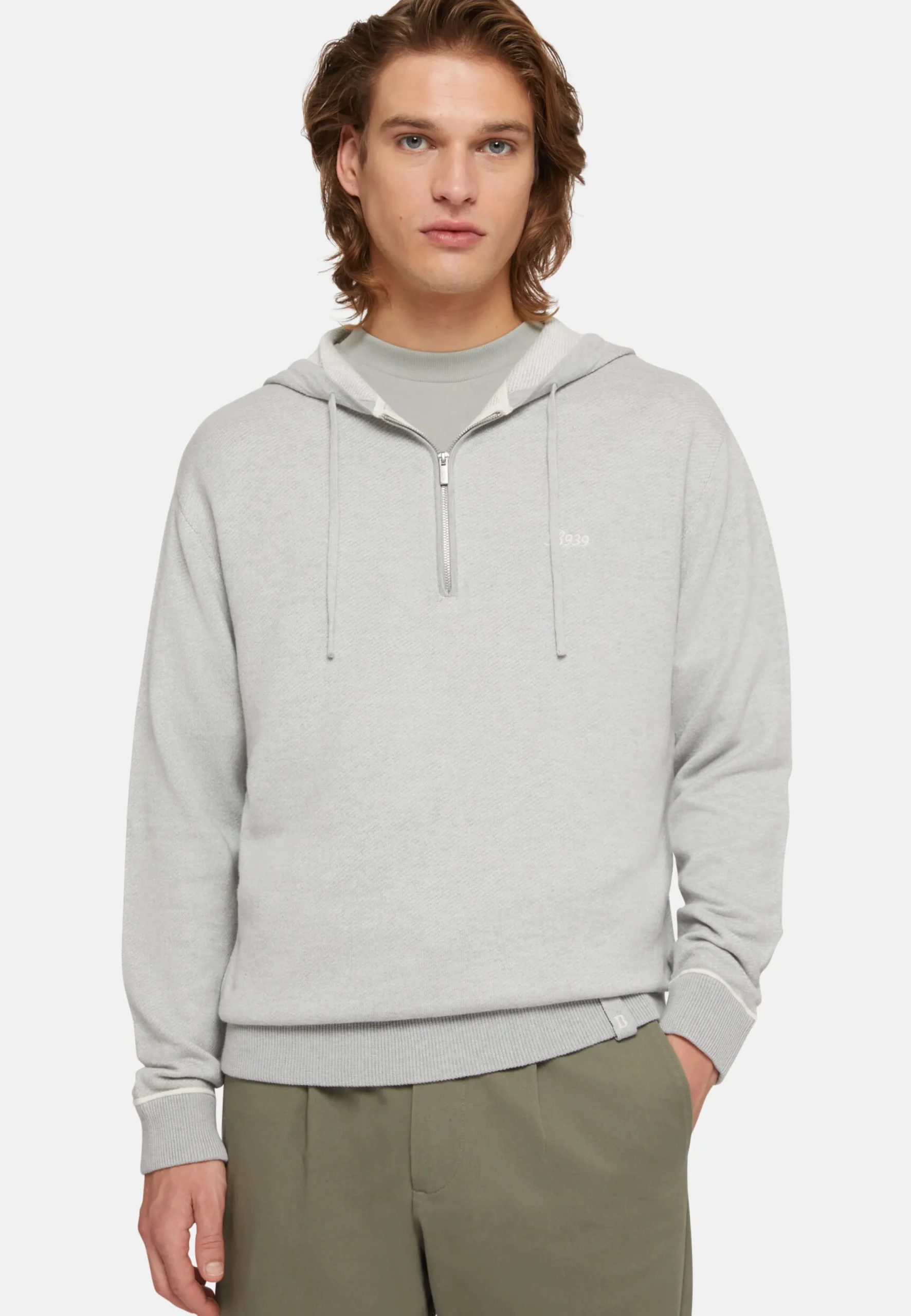 Réalisé en molleton dans un fil spécial de coton, soie et cachemire.