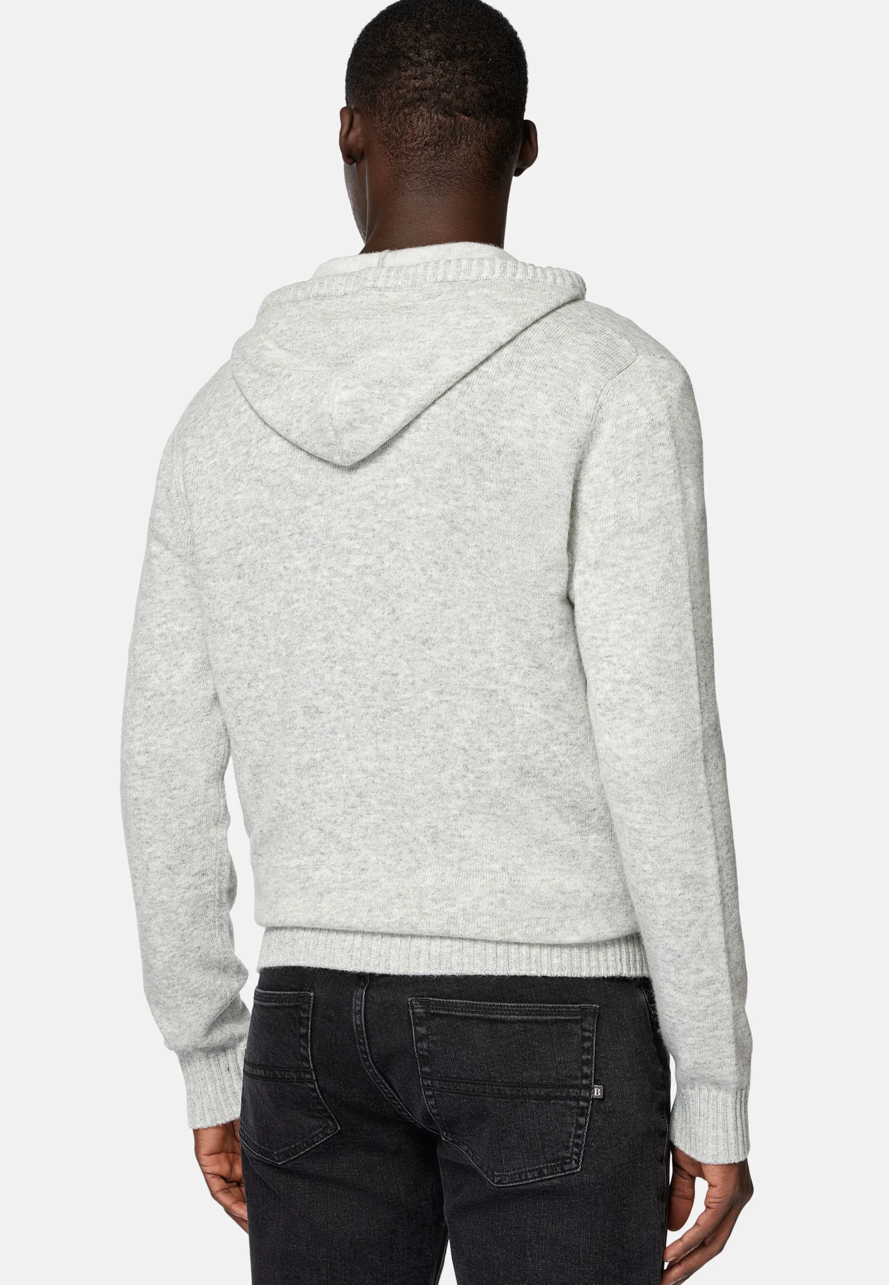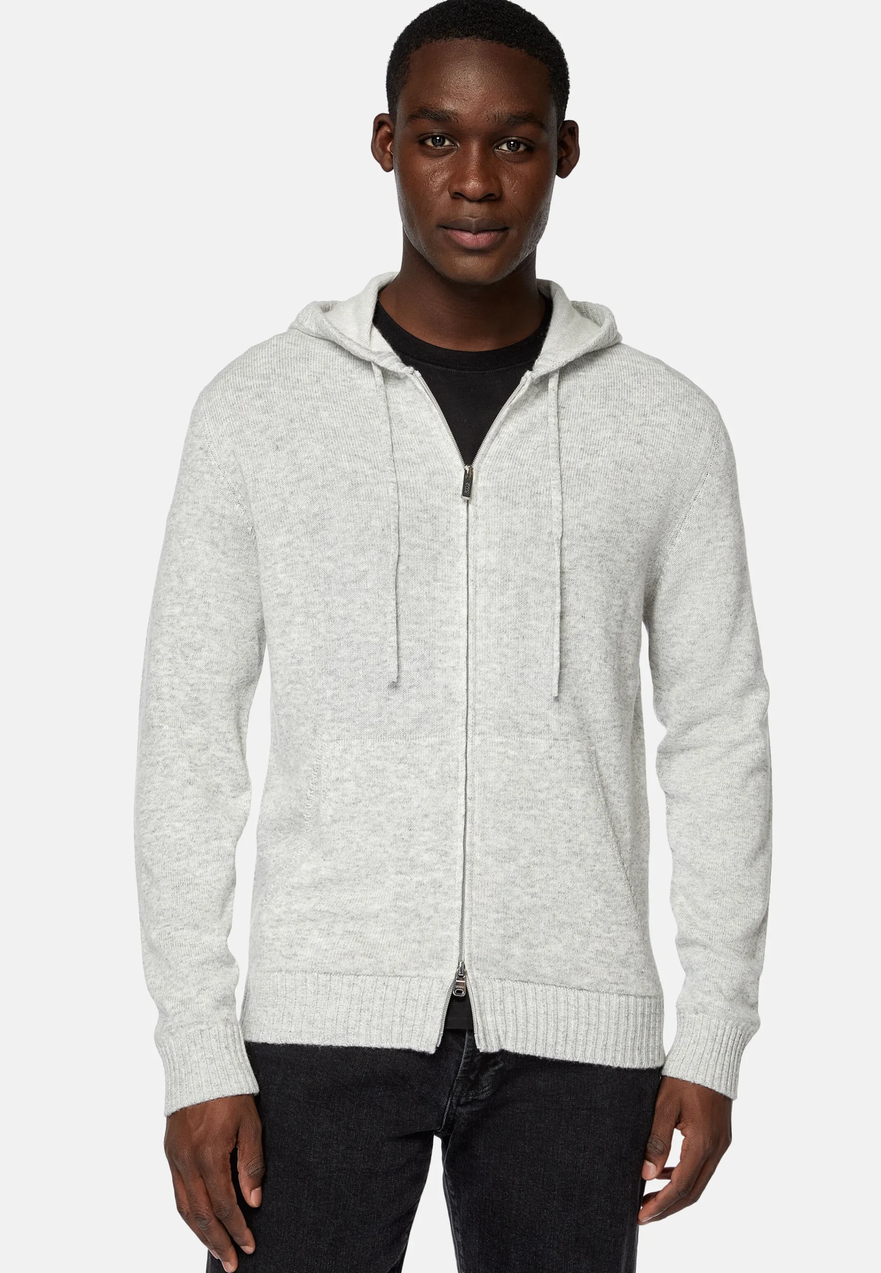 Le vêtement présente un cordon de serrage dans le même ton et des finitions en côtes anglaises vanisées aux poignets et au bas.