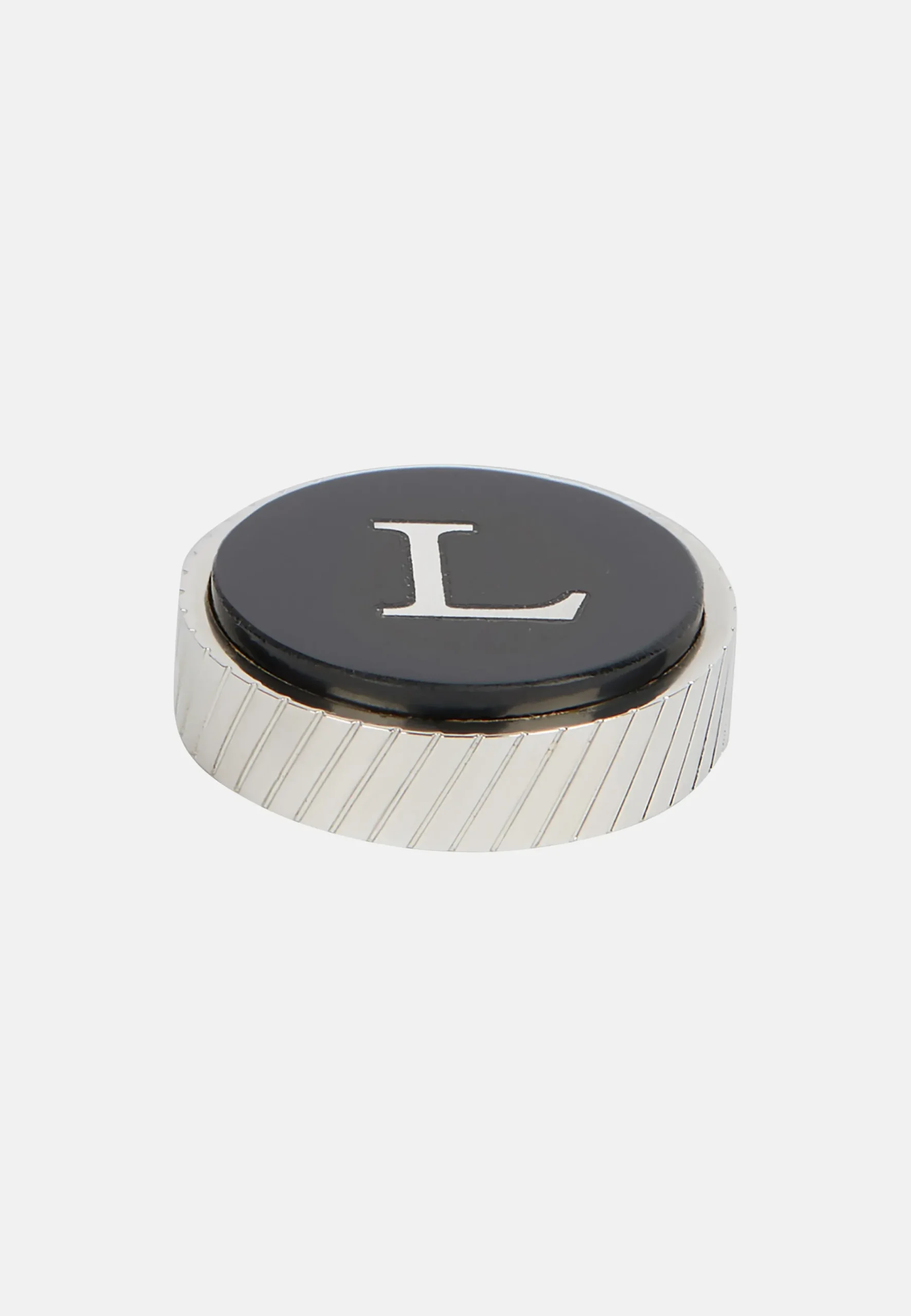 il se caractérise par la lettre émaillée sur fond noir, à appliquer sur la base spéciale pour boutons de manchette en métal.