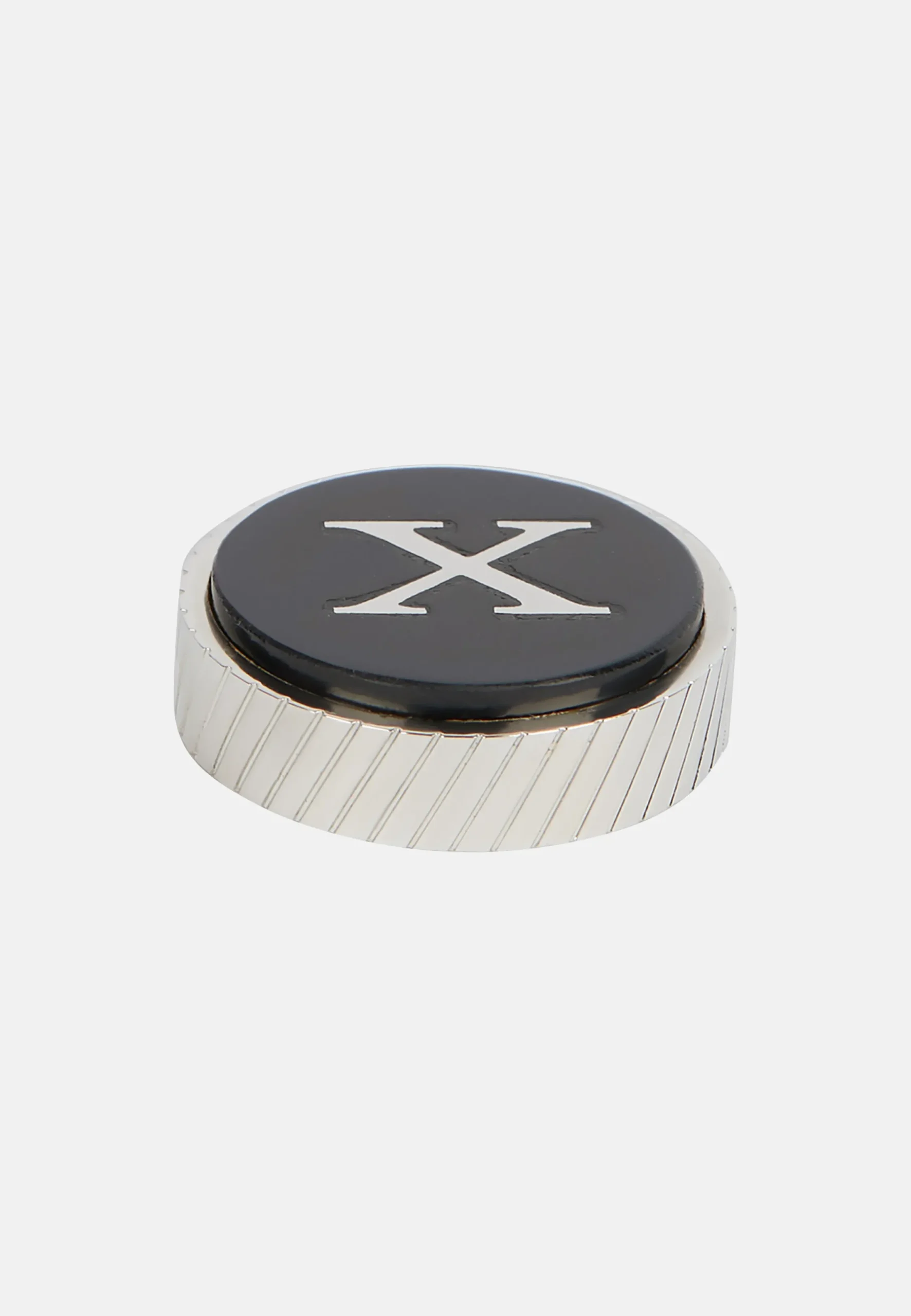 il se caractérise par la lettre émaillée sur fond noir, à appliquer sur la base spéciale pour boutons de manchette en métal.