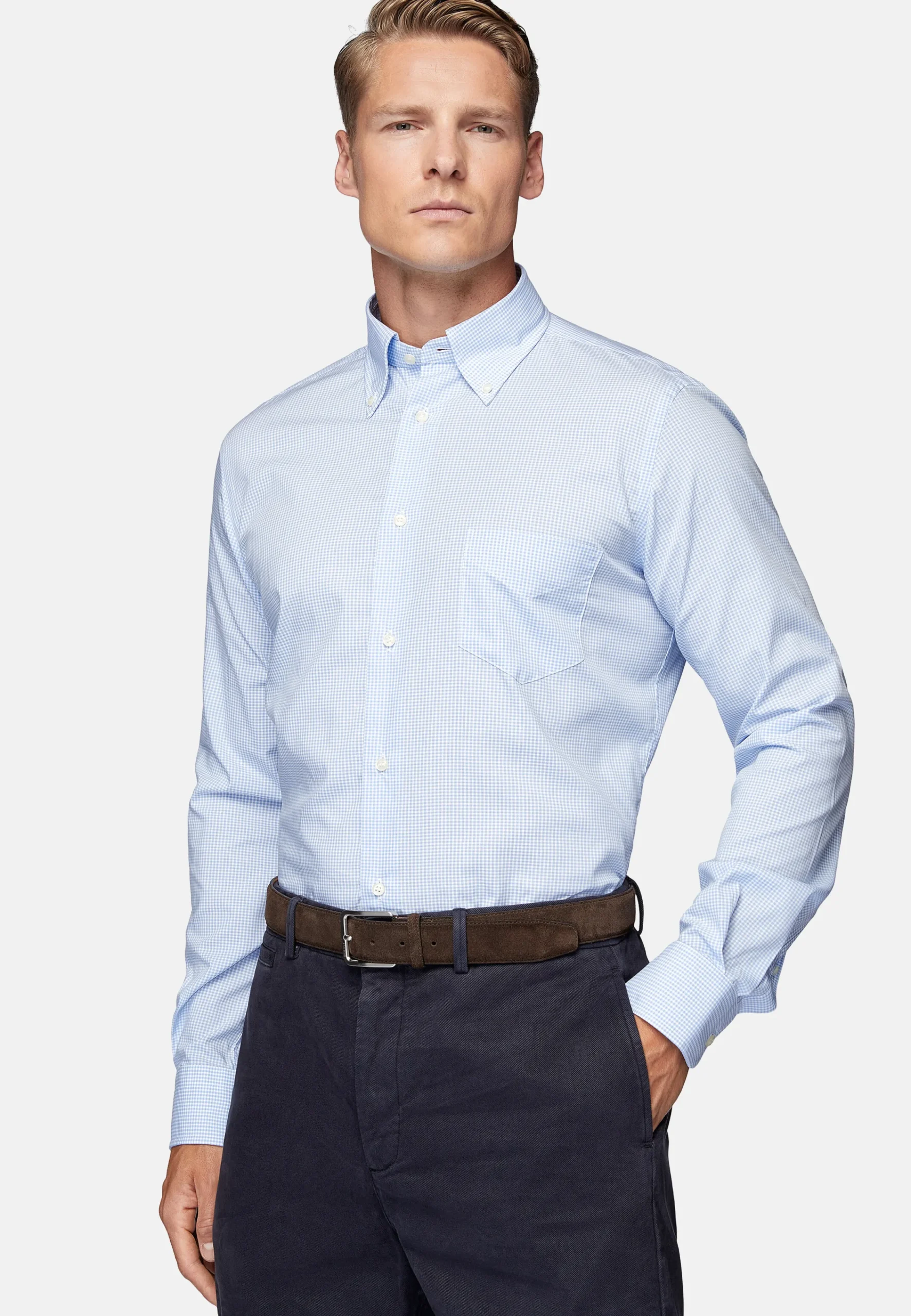 Chemises Habillées-Boggi Milano Chemise À Carreaux En Popeline De Coton Regular Fit Bleu clair