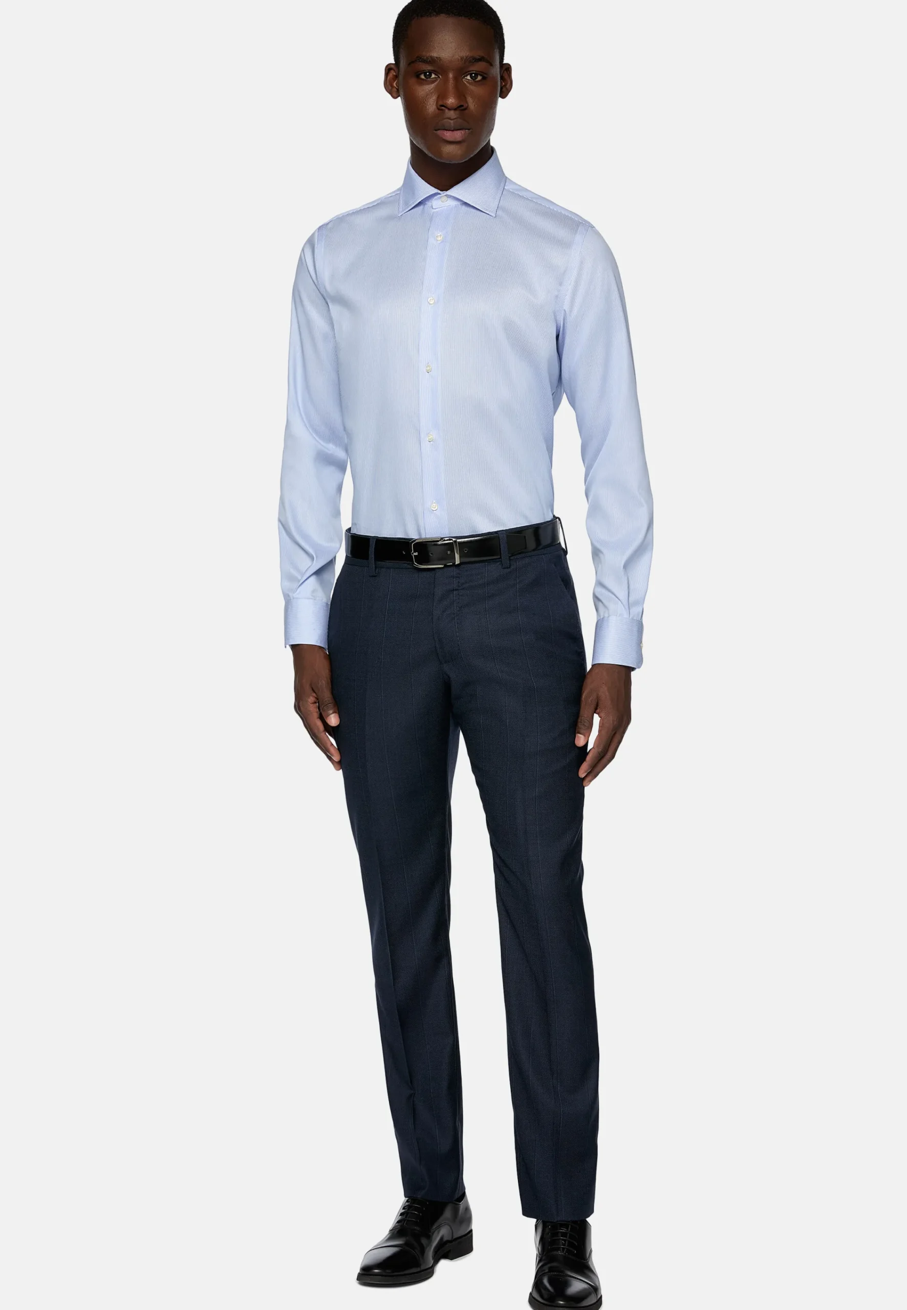 Chemises Habillées-Boggi Milano Chemise À Rayures En Sergé De Coton Regular Fit Bleu clair