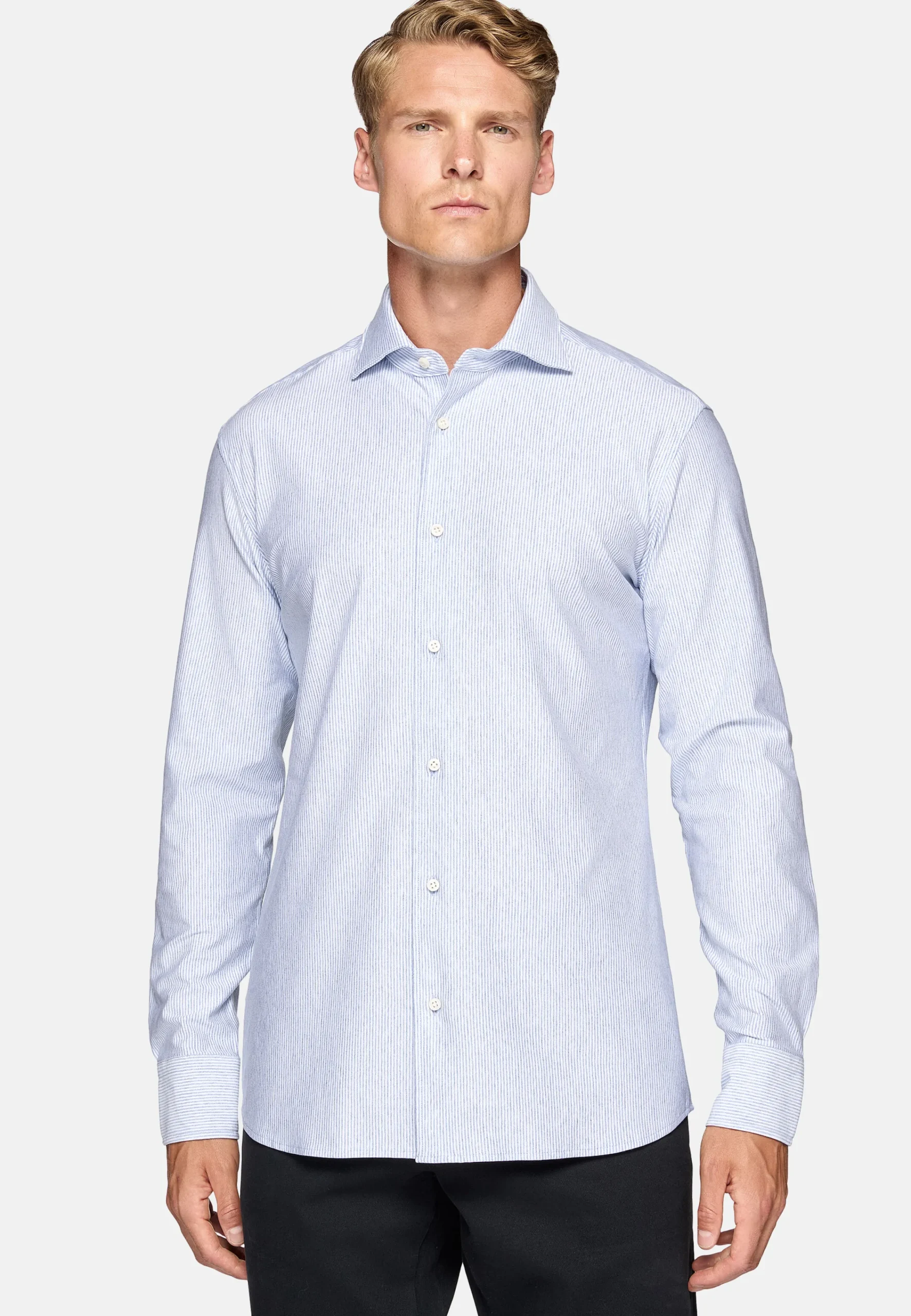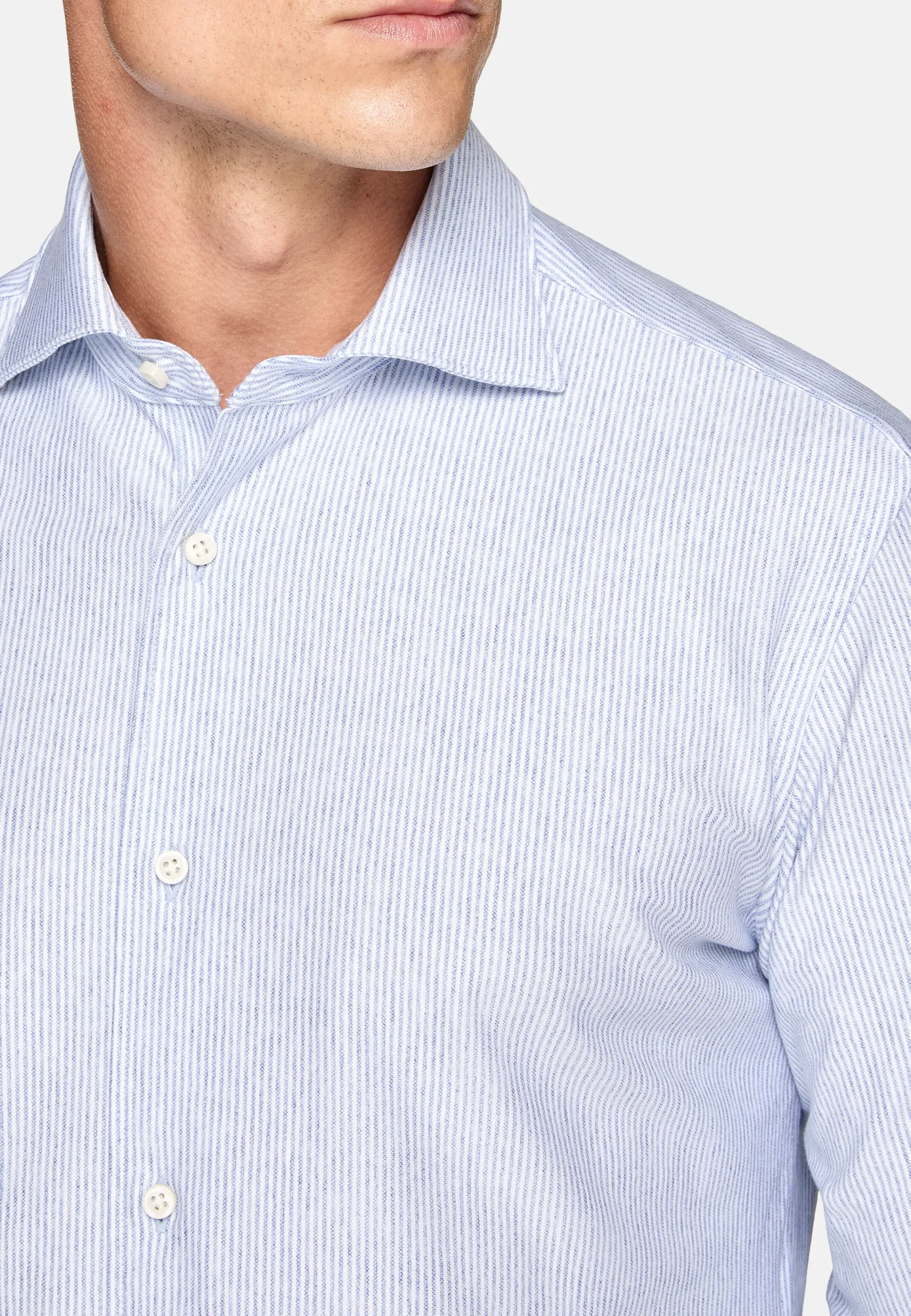 Chemises Habillées-Boggi Milano Chemise À Rayures En Sergé De Coton Regular Fit Bleu clair