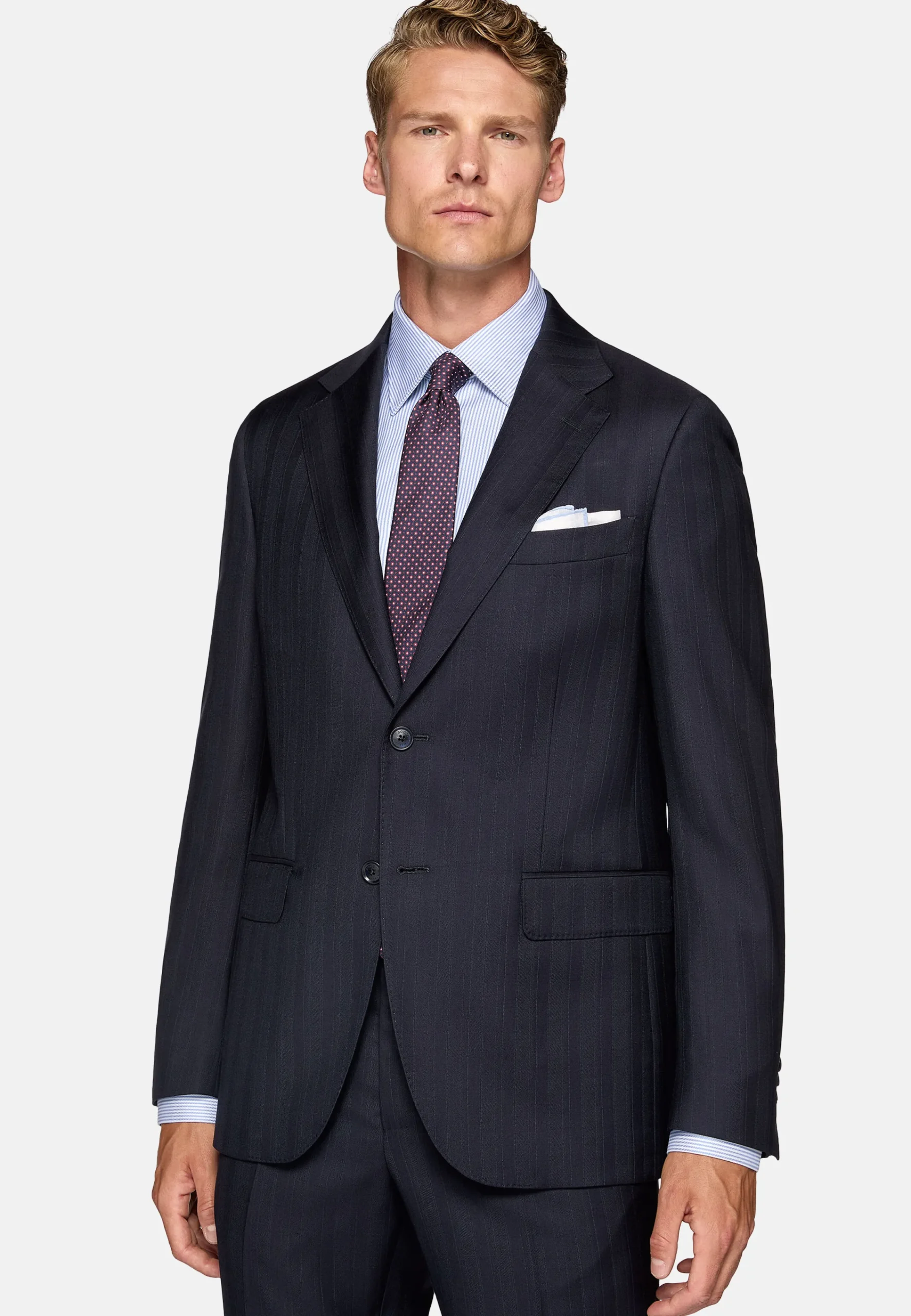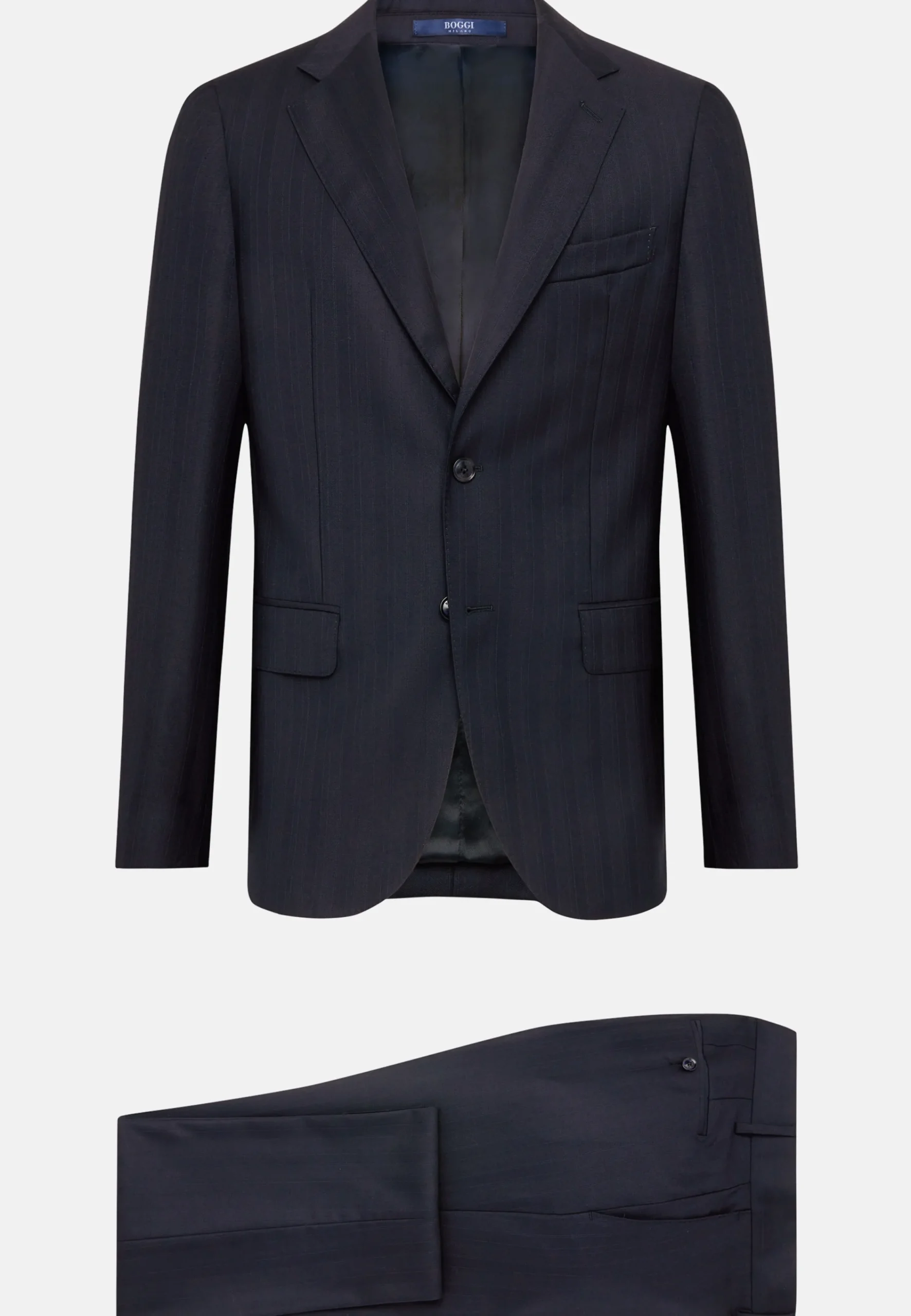Costume coupe droite, confection semi-entoilée, à simple boutonnage, entièrement doublé avec poches à rabat.