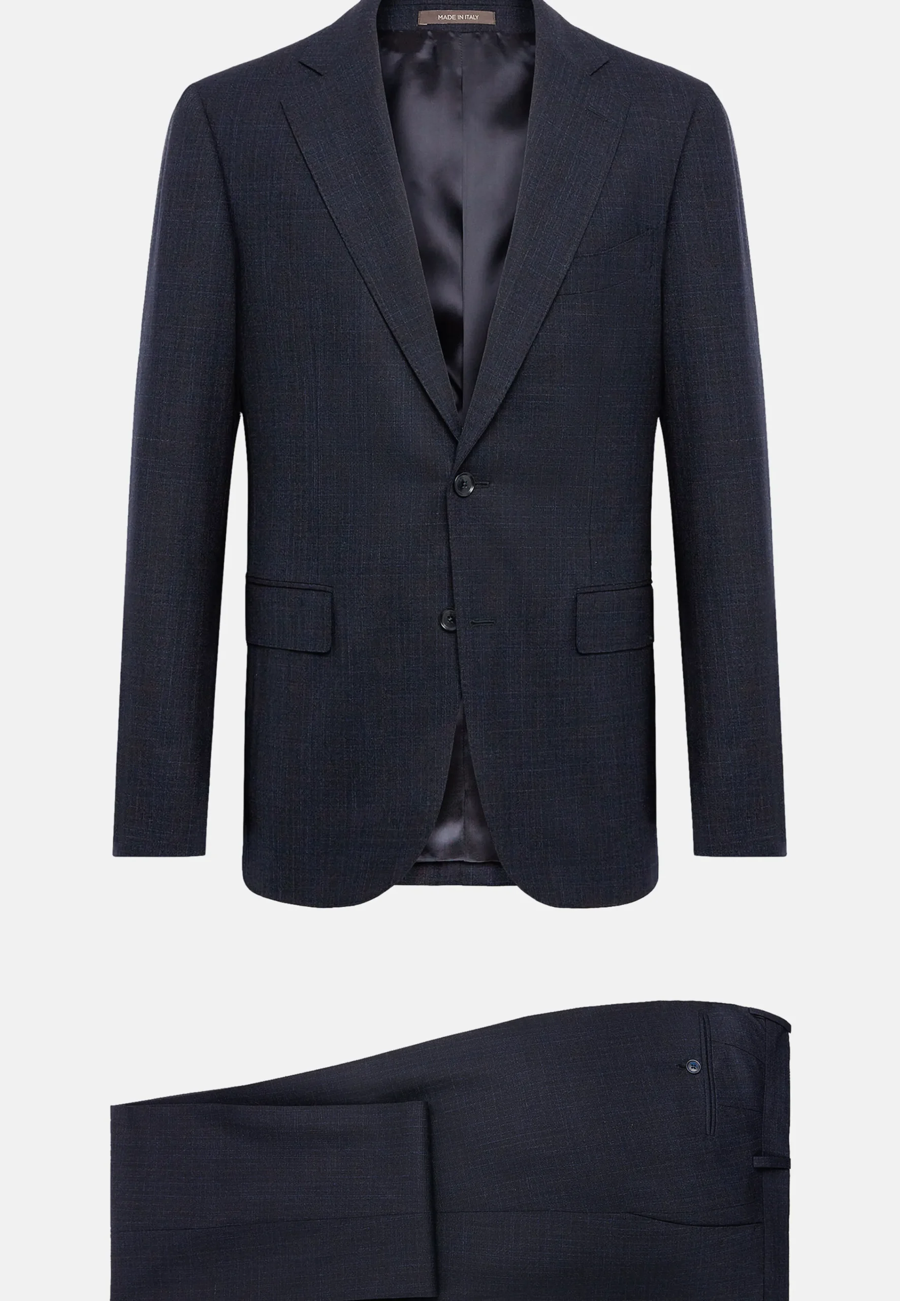 Costume coupe droite, construction entoilée, à simple boutonnage, entièrement doublé avec poches à rabat.