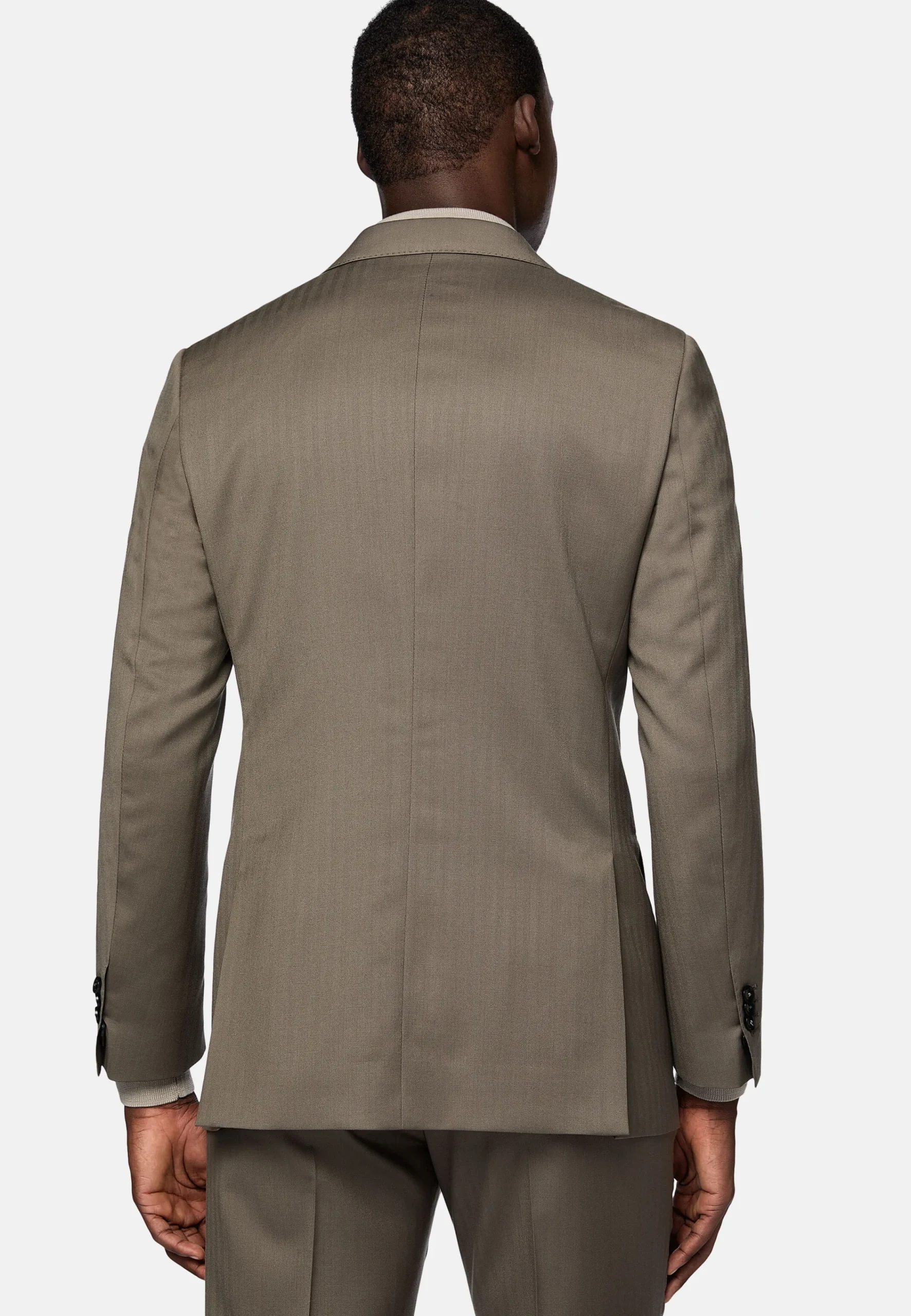 Costume coupe droite, confection semi-entoilée, à simple boutonnage, entièrement doublé avec poches à rabat.