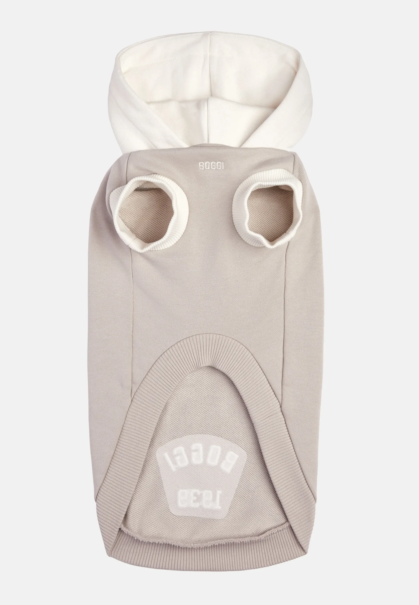 Le vêtement présente un logo brodé sur le bas et le poitrail, des finitions côtelées sur les jambes avant et le bord inférieur et une boutonnière pratique pour le passage de la laisse dans le dos.