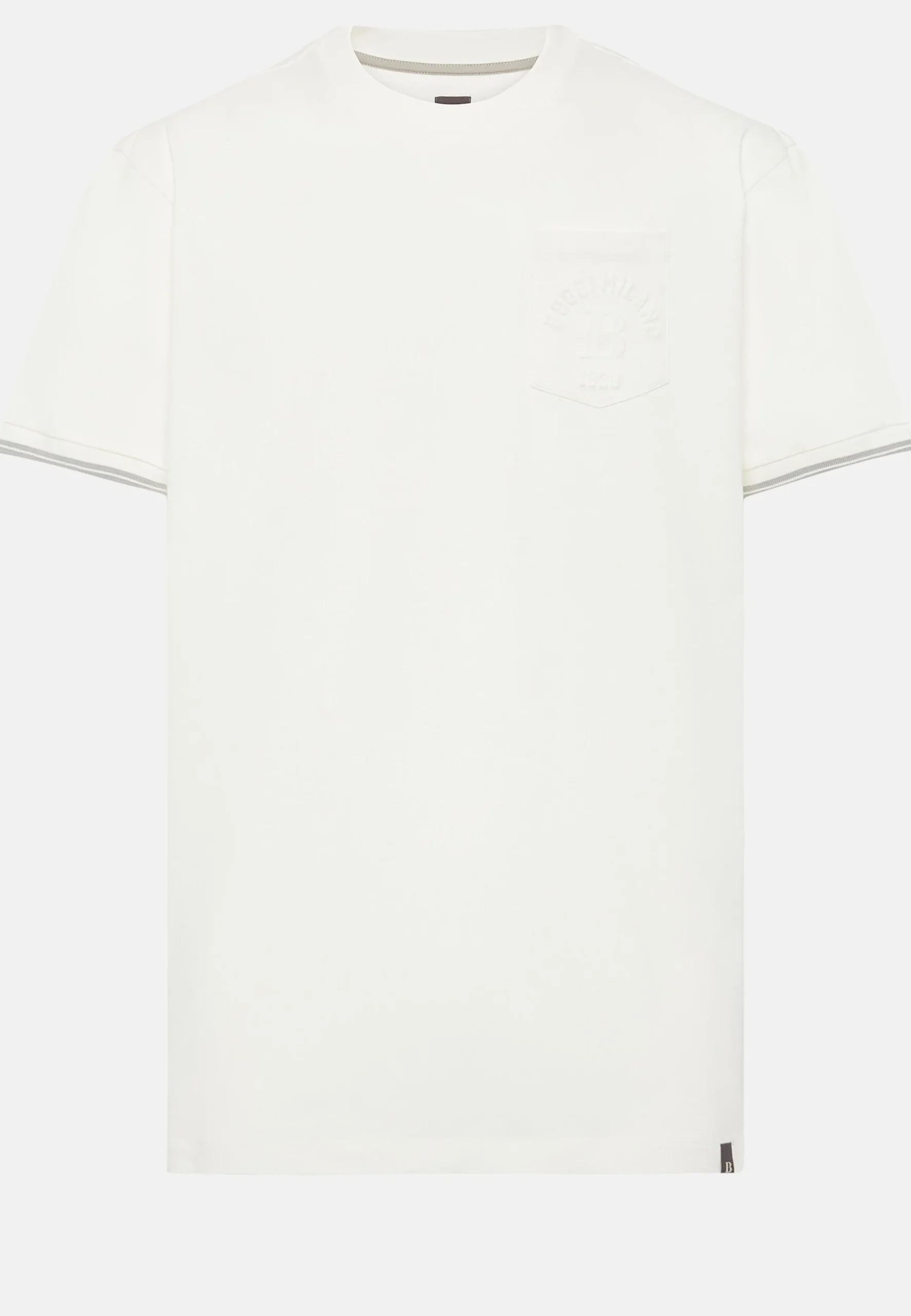 Ce modèle présente un col et des poignets côtelés, le logo Boggi Milano B 1939 en relief sur la poche plaquée à l’avant, une broderie B Sustainable côté gauche à l’arrière et le B de Boggi Milano appliqué en bas à gauche du vêtement.